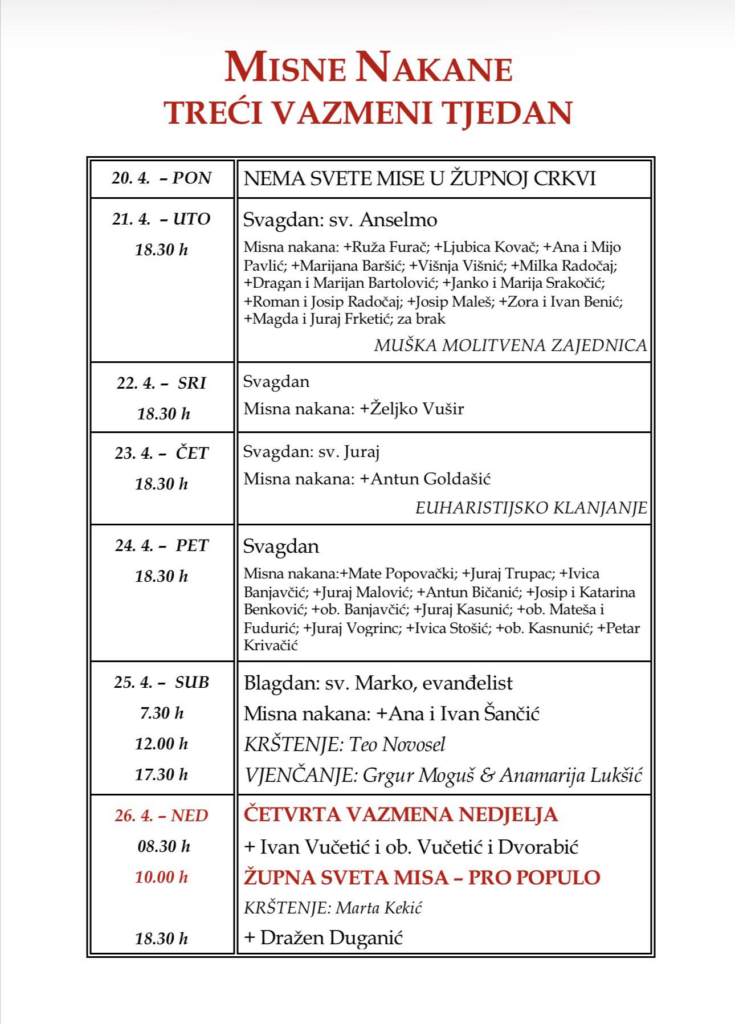 MISNE NAKANE – TREĆI VAZMENI TJEDAN