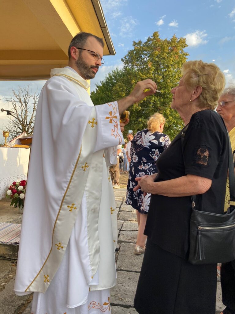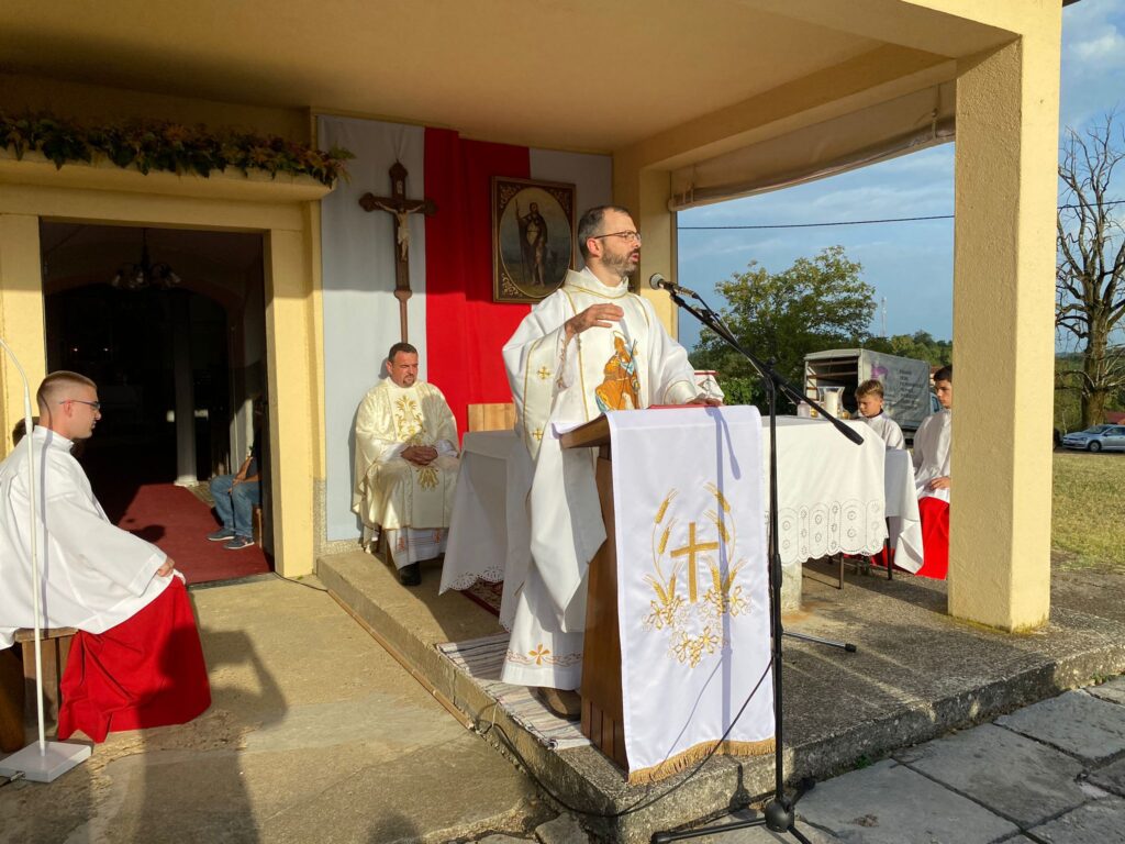 Svetu misu u 18.00 sati predvodio je preč. Tomislav Šagud, župnik župe Presvetog Trojstva u Prečkom (Zagreb). Naglasak njegove homilije bilo je upravo o važnosti Tijela Kristova koji nam daje život, o važnosti nedjeljne svete mise i tijela jednako kao i duše i duha.
