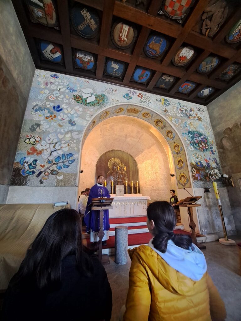 Jutarnjim vlakom iz Duge Rese i žičarom stigli smo na svoje odredište. Te dane proveli smo vrlo aktivno u molitvi, planinarenju, klanjanju, kuhanju i pranju suđa, katehezama… Sasvim „slučajno“ s nama je bio i vlč. Tomislav Dokoza koji nam je propovijedao i održao katehezu o Mk 1,11.